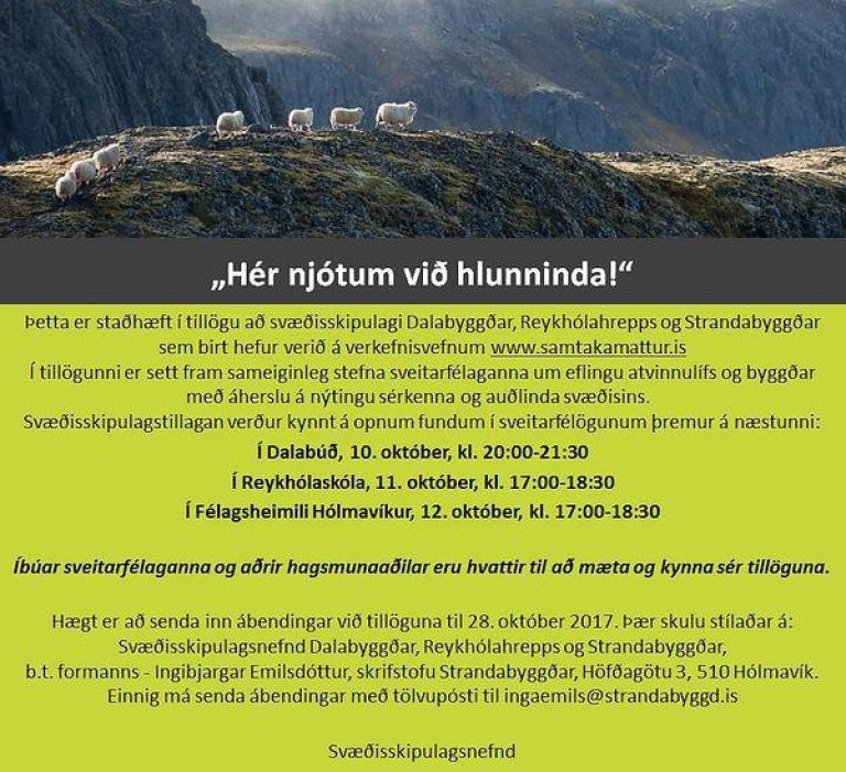 Í Félagsheimili Hólmavíkur, 12. október, kl. 17:00-18:30