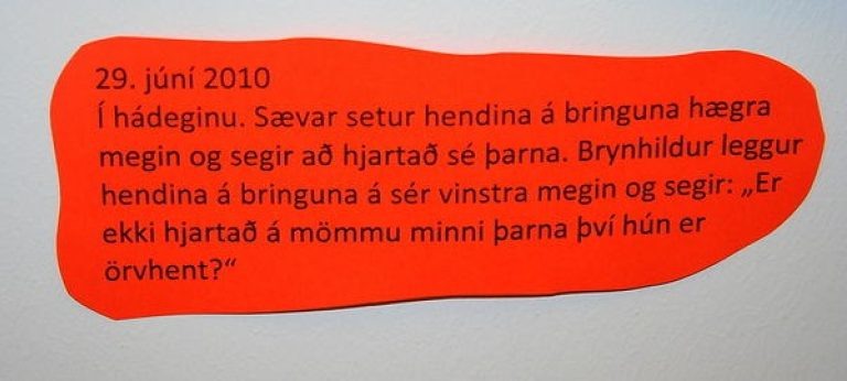 Innan um listaverkin má finna fjölda skemmtilegra gullkorna sem fallið hafa af vörum nemendanna sem starfsfólkið hefur varðveitt. Sýningin mun standa uppi í Íþróttamiðstöðinni næstu vikur. Sveitarfélagið Strandabyggð sendir nemendum og starfsfólki leikskólans Lækjarbrekku innilegar hamingjuóskir.