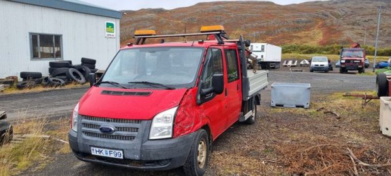 Strandabyggð auglýsir til sölu bifreiðina Ford Transit árg 2012. Bílinn er með bilaða vél og er tjónaður á framan. Á honum er lítill krani sem hefur verið í lagi.