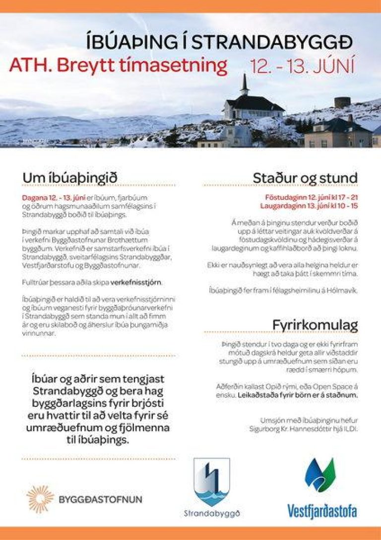 Dagana 12. - 13. júní er íbúum,fjarbúum og öðrum hagsmunaaðilum samfélagsins í Strandabyggð boðið til íbúaþings.