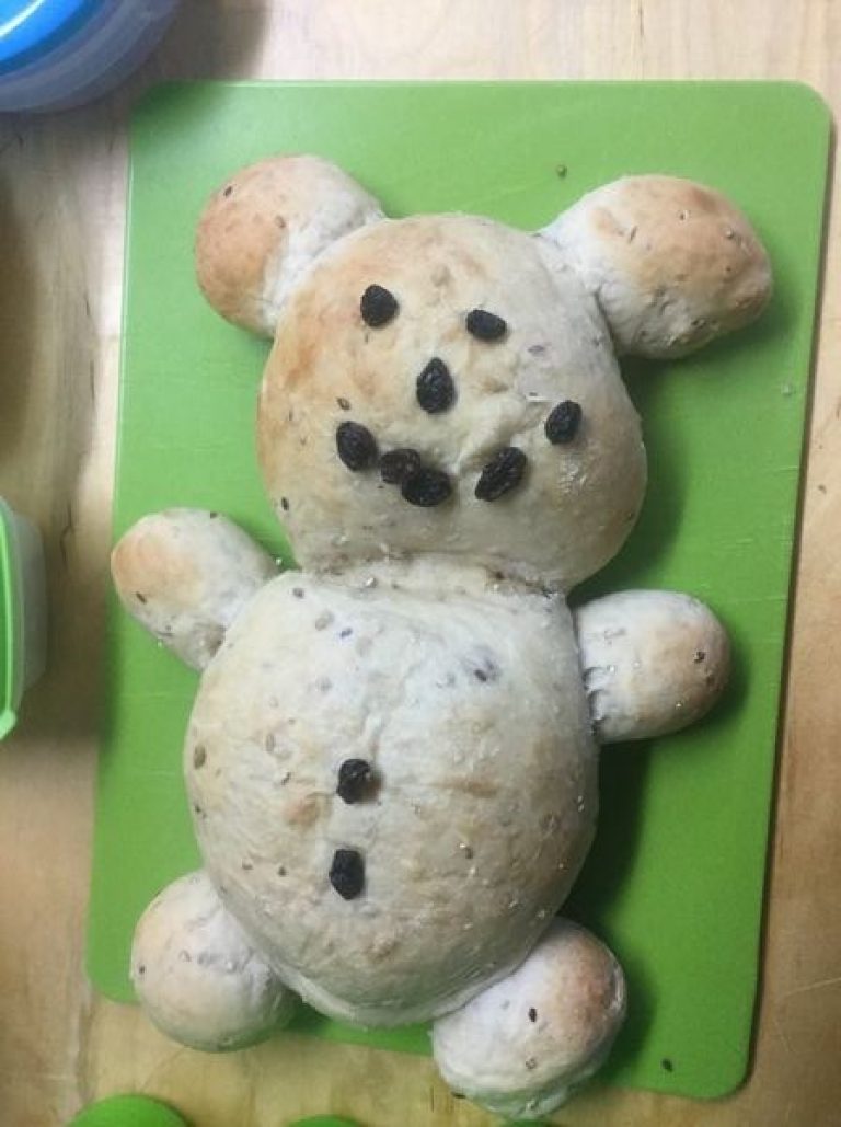 Í dag fengu börnin bangsabrauð í kaffitímanum. Frú Stella skellti í tvö stór bangsabrauð og nokkur lítil. Öll börnin á eldri deildinni fengu lítinn brauðbangsa til að snæða og sv...