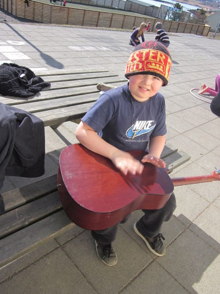 Í listum hjá Dúnu gerði ég ástralska frumbyggja mynd. Hún leyfði mér að hlusta á frumbyggja tónlist og svo fékk ég að prófa blásturshljóðfærið hennar.