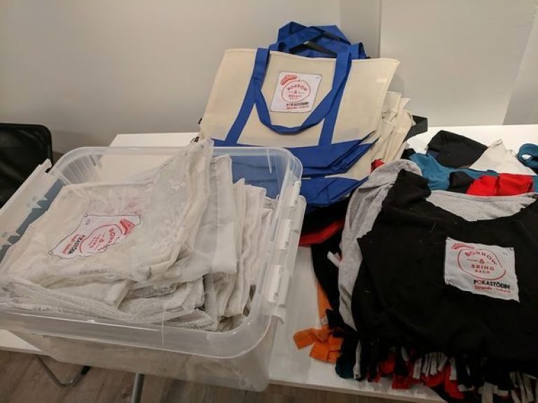 Í gær, mánudaginn 23. okt, var verkefnið „Pokastöðin Strandir“ formlega sett á laggirnar. Þá var kynning á verkefninu og fyrsti saumahittingur í Hnyðju á Hólmavík. Alls mættu 21 aðili á öllum aldri til að leggja verkefninu lið. Hluti af umhverfisnefnd Grunnskólans á Hólmavík lagði fram starfskrafta sína en grunnskólinn ýtti verkefninu úr vör sl. vor með því að sauma og hnýta 75 fjölnotapoka úr stuttermabolum. Þeir pokar fóru allir í Kaupfélag Steingrímsfjarðar á Hólmavík. Í gær var lögð áhersla á að sauma gegnsæja poka fyrir grænmeti og ávexti og breyttist Hnyðja í sannkallaða saumaverksmiðju þar sem samtals voru kláraðir 203 pokar, merktir logo verkefnisins Boomerang – Pokastöðin Strandir.