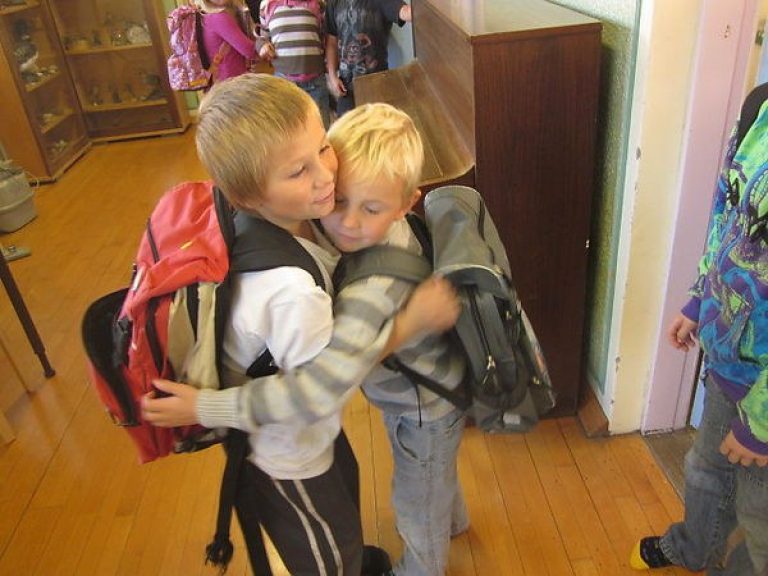 Góður vinur minn og bekkjarfélagi hann Miro er að flytja frá Hólmavík um helgina og var föstudagurinn notaður vel til að kveðja hann. Ég teiknaði mynd og skrifaði fallega kveðju til hans, síðan var kveðja mín límd inn í bók og skreytt með myndum úr skólastarfinu okkar. Þá settist ég í hring með öllum hinum í bekknum, við sögðum öll eitthvað fallegt um Miro og kvöddum hann með knúsi.