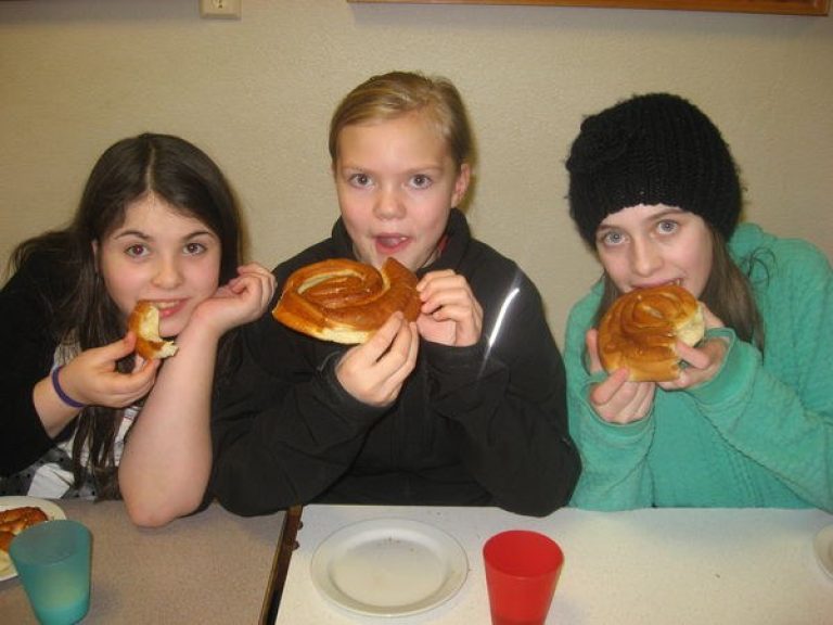 Það var glatt á hjalla í kvöldhressingunni í Reykjaskóla í gær þar sem allir gæddu sér á Reykjaskólasnúðum.