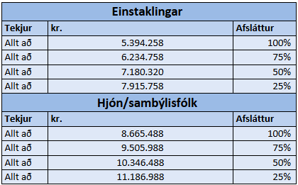 Við ákvörðun afsláttar skulu notaðar eftirfarandi viðmiðanir: