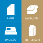 Í tunnu fyrir pappír og pappa má fara: Dagblöð, umslög, gluggaumslög, skrifstofupappír, bæklingar, kassakvittanir, hreinar og þurrar mjólkurfernur, gjafapappír, eggjabakkar, post-it miðar, morgunkornspakkar, klósettrúllur, millispjöld af vörubrettum, hreinir pizzakassar, pappakassar.